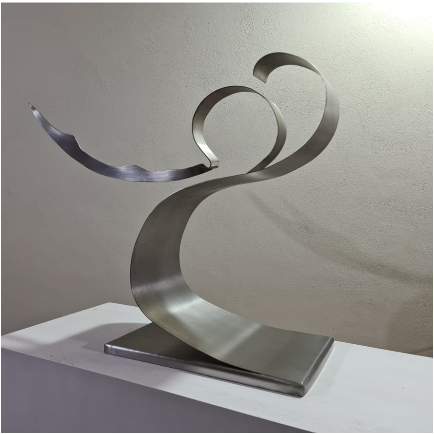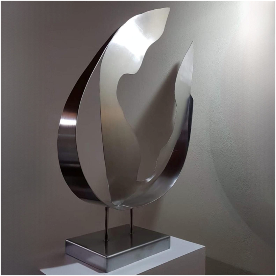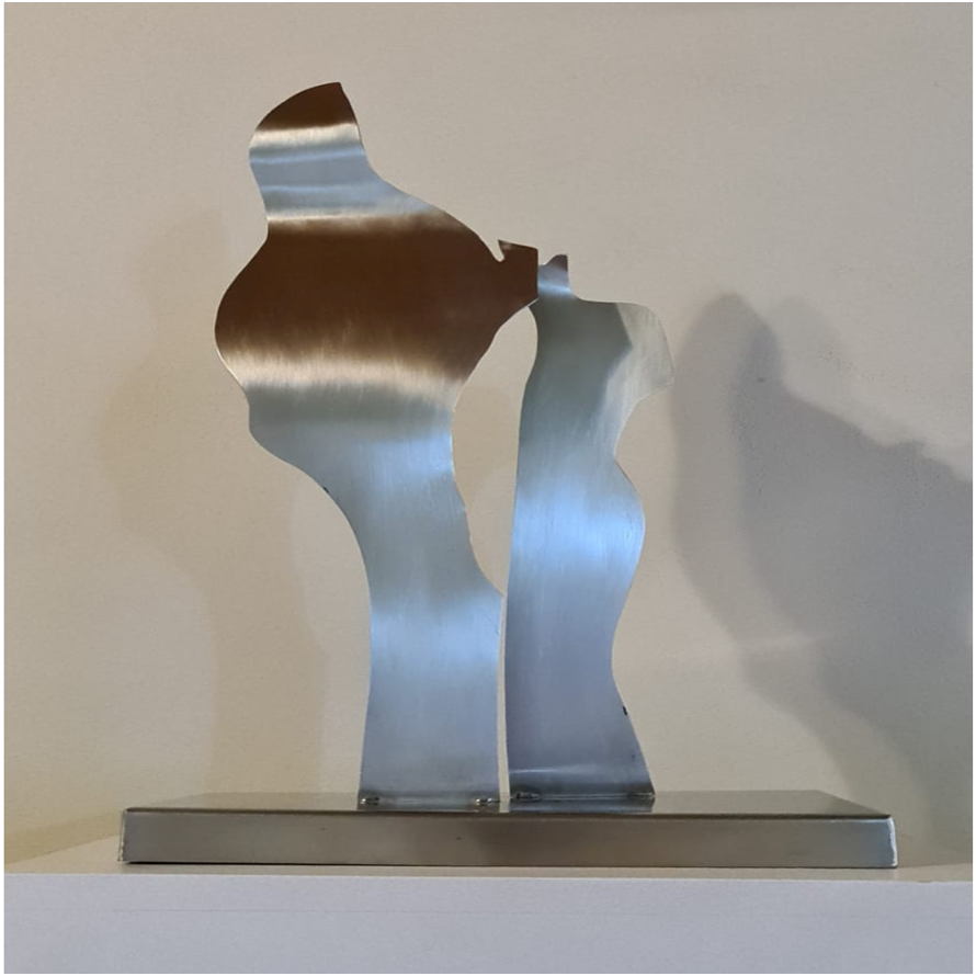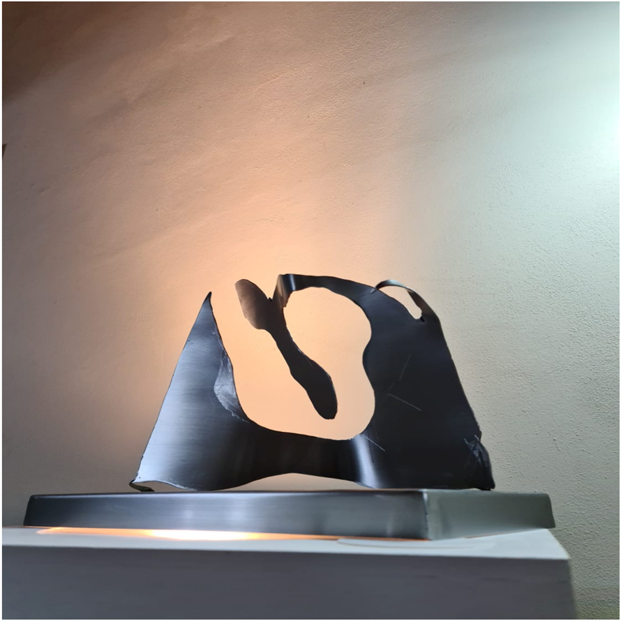 Actualmente estoy desarrollando una instalación titulada Un beso en la frente, que propone una experiencia íntima y afectiva a través de volúmenes escultóricos, luz, sonido e interacción con el espectador. Es una obra que habla del cuidado, el gesto simbólico y el vínculo. Estoy…también finalizando una serie en acero inoxidable que explora el concepto de expansión y energía interna.