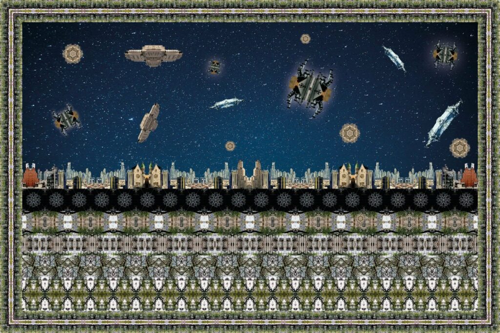 ● VÍCTOR BECKELMANN, artista paraguayo, reconfigura Buenos Aires a través de la fotografía digital intervenida y la simetría caleidoscópica, revelando la arquitectura como «mandalas urbanos».