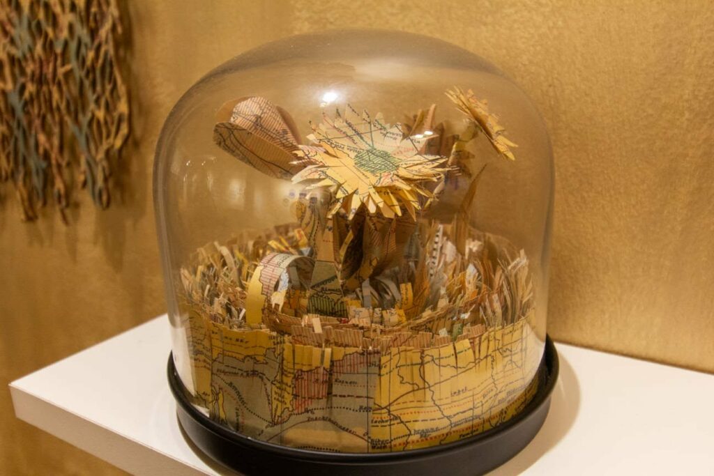 ● LAURA DALTON presenta sus mapas calados que exploran el desarraigo migratorio, utilizando la valija y la raíz como símbolos del territorio amado.