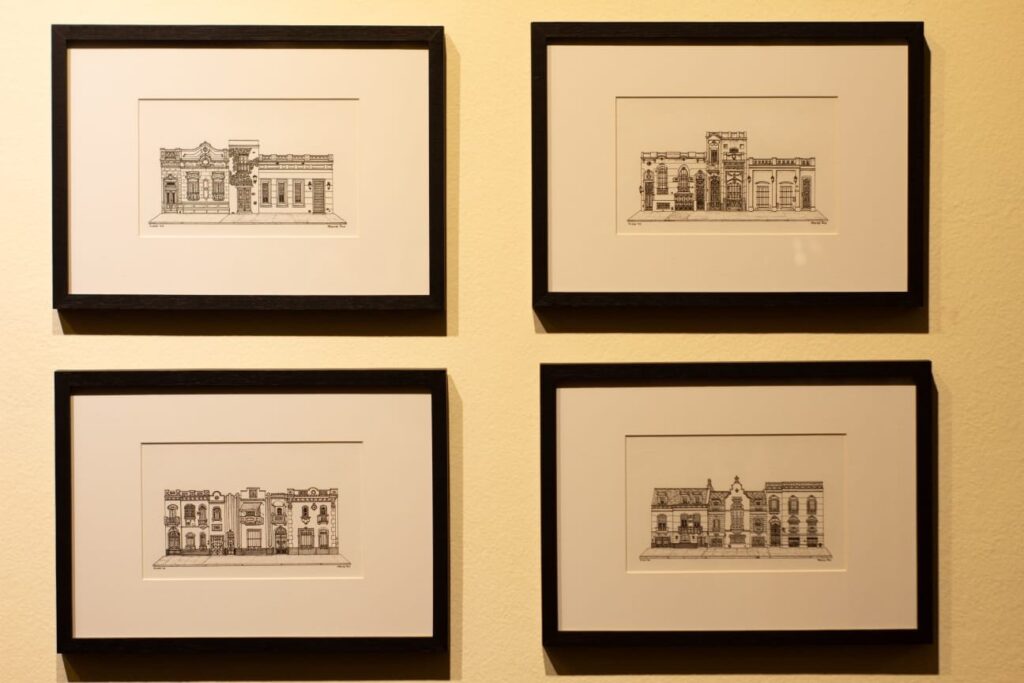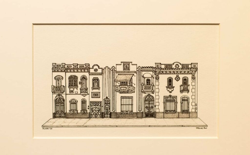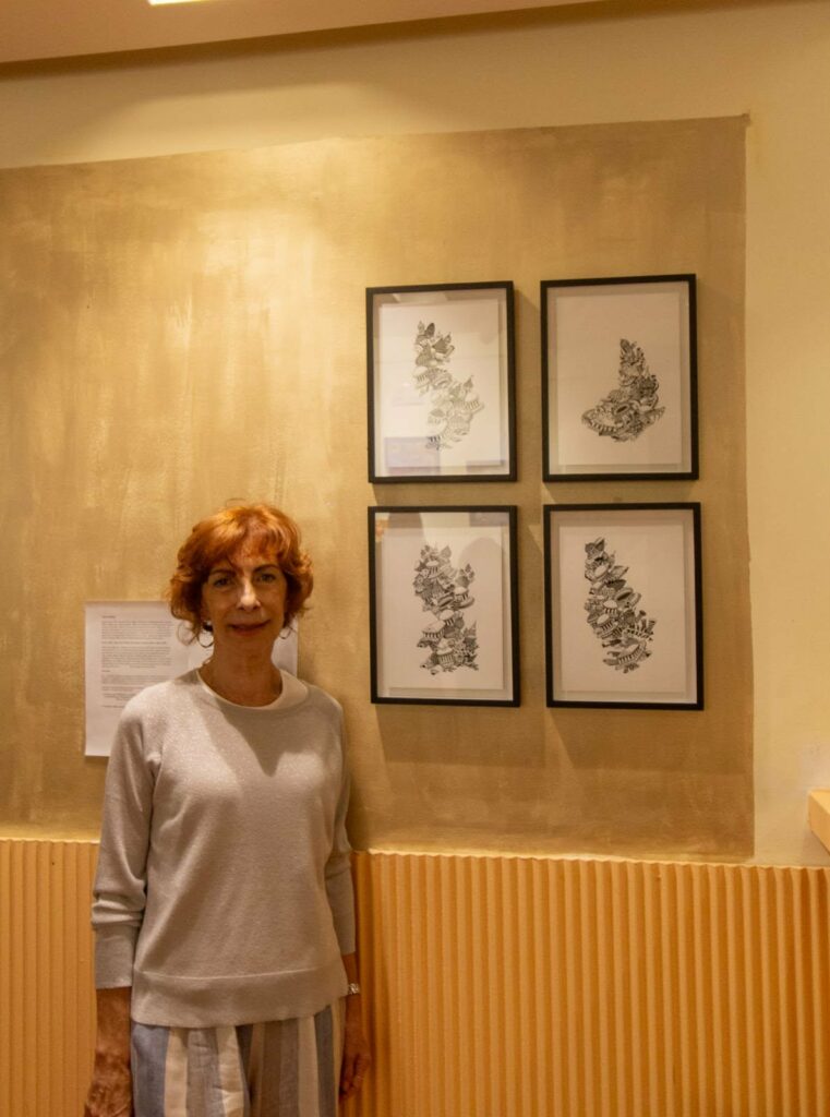 ● MARIEL ROS se centra en dibujo en tinta sobre papel, explorando la relación entre arquitectura, memoria y la experiencia urbana, con atención a las huellas que el paso del tiempo deja en los espacios.